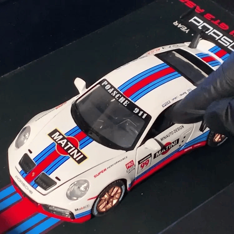 This Porsche GT diecast model features a full alloy construction, providing both durability and an authentic, premium feel.